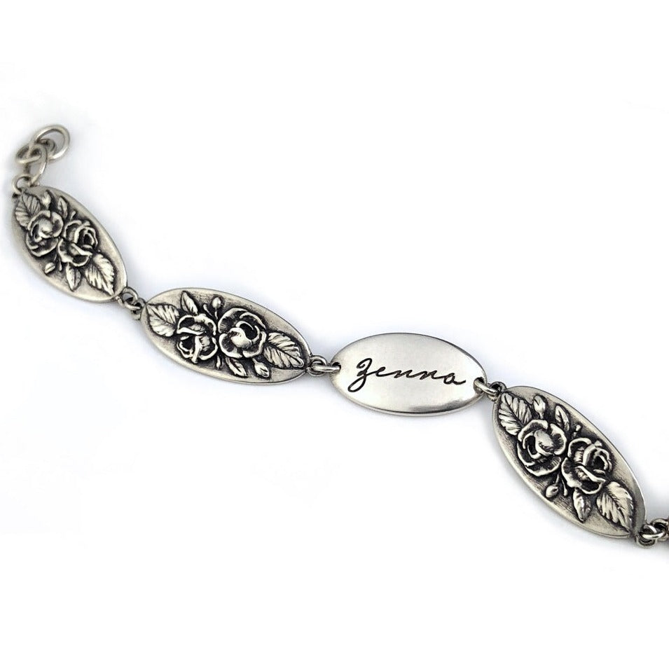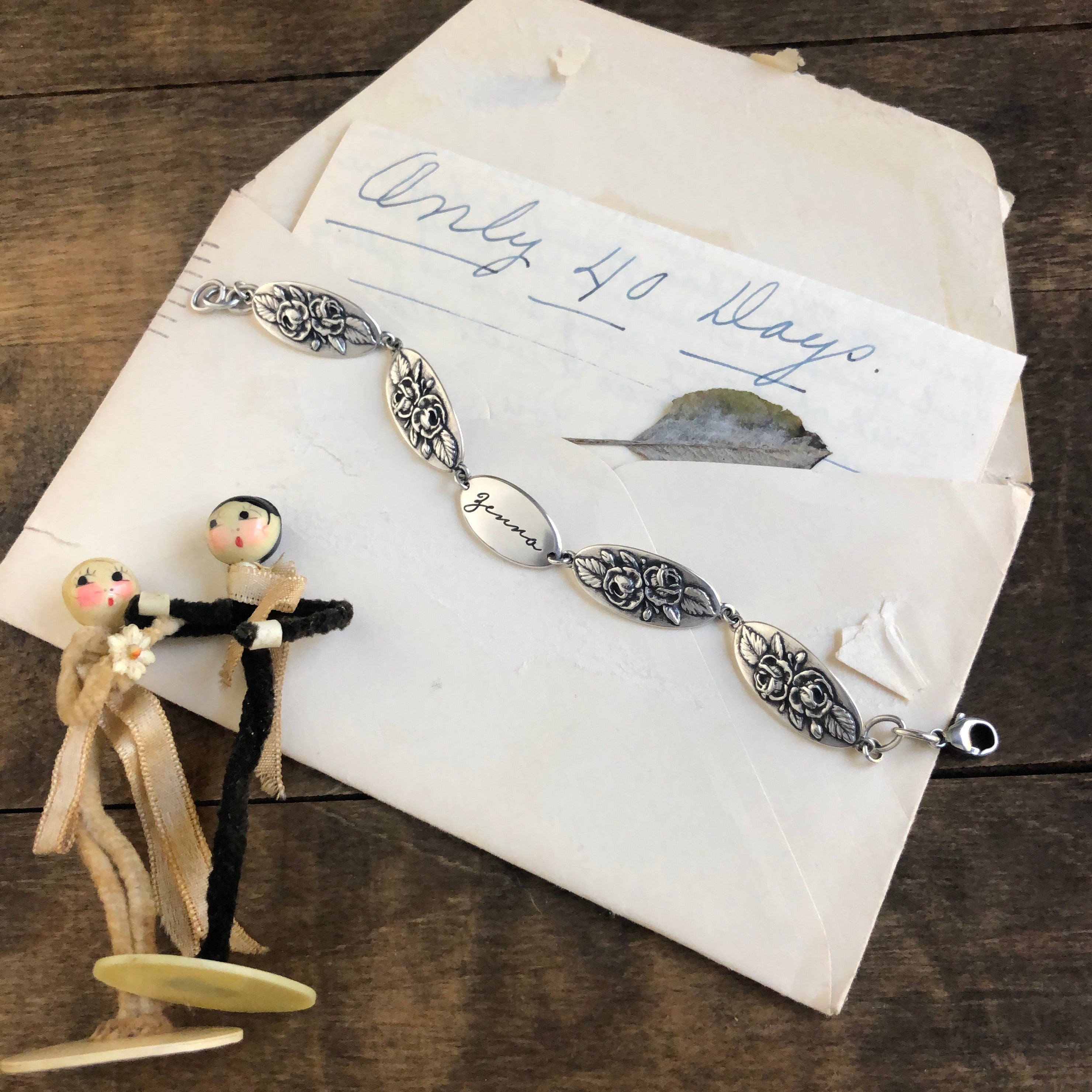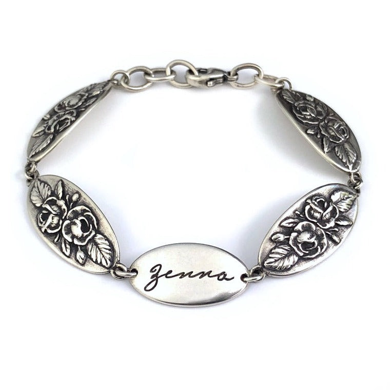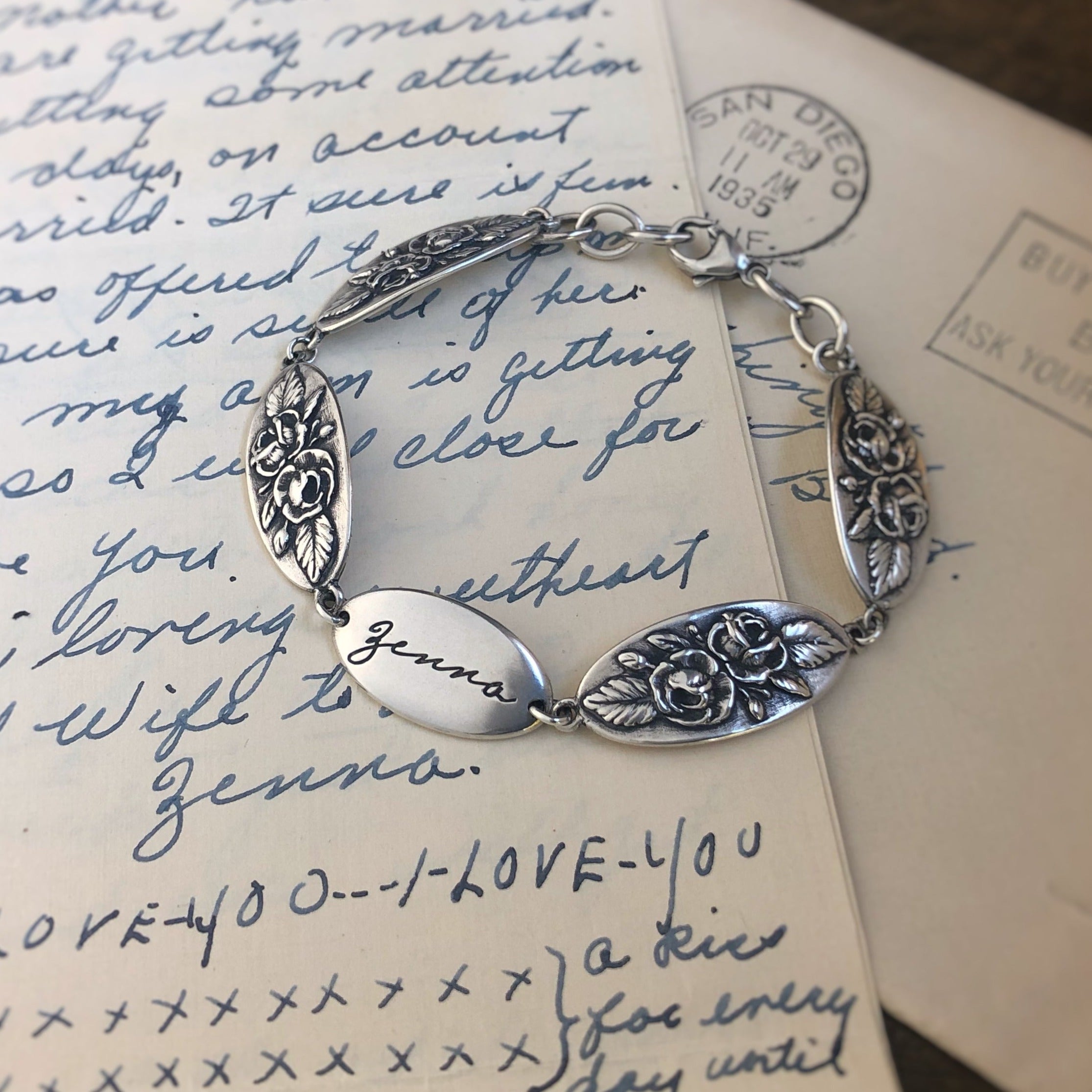 Personalize your bracelet with an inspirational word, a name, a tender remembrance, an inside joke, or a sweet sentiment. Create an heirloom by preserving the handwriting of one you love.