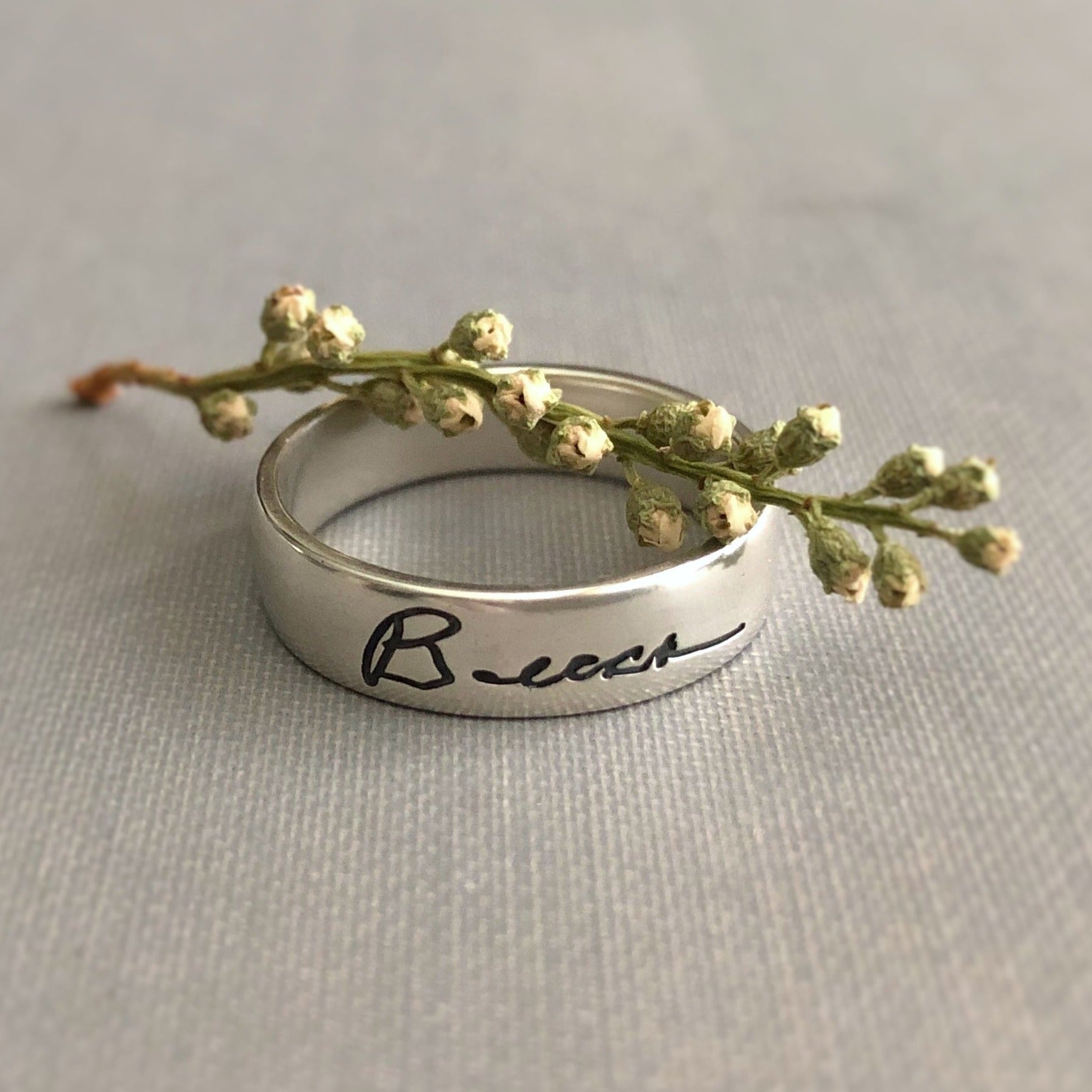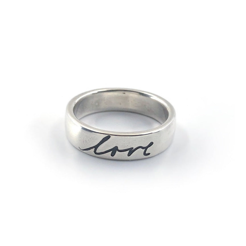 Personalize your ring with an inspirational word, a name, a tender remembrance, an inside joke, or a sweet sentiment. Create an heirloom by preserving the handwriting of one you cherish.