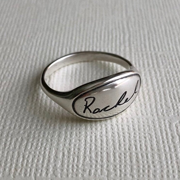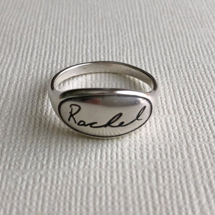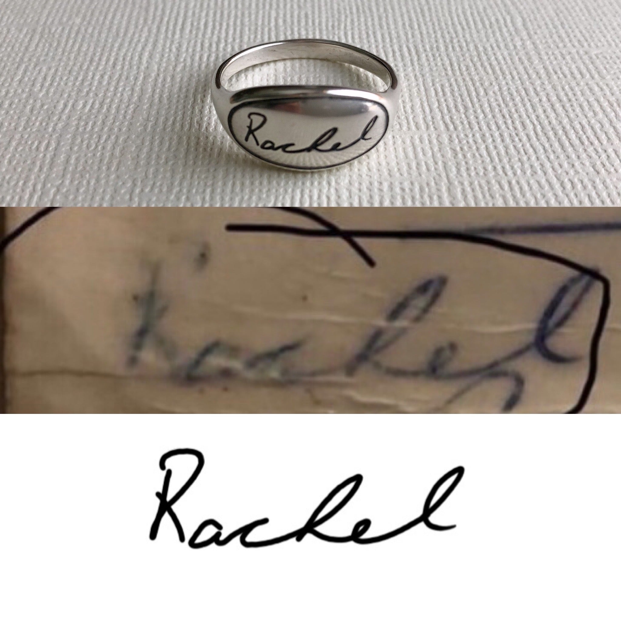 Personalize your ring with an inspirational word, a name, a tender remembrance, an inside joke, or a sweet sentiment. Create an heirloom by preserving the handwriting of one you love.