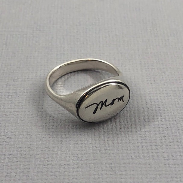 Personalize your ring with an inspirational word, a name, a tender remembrance, an inside joke, or a sweet sentiment. Create an heirloom by preserving the handwriting of one you cherish.