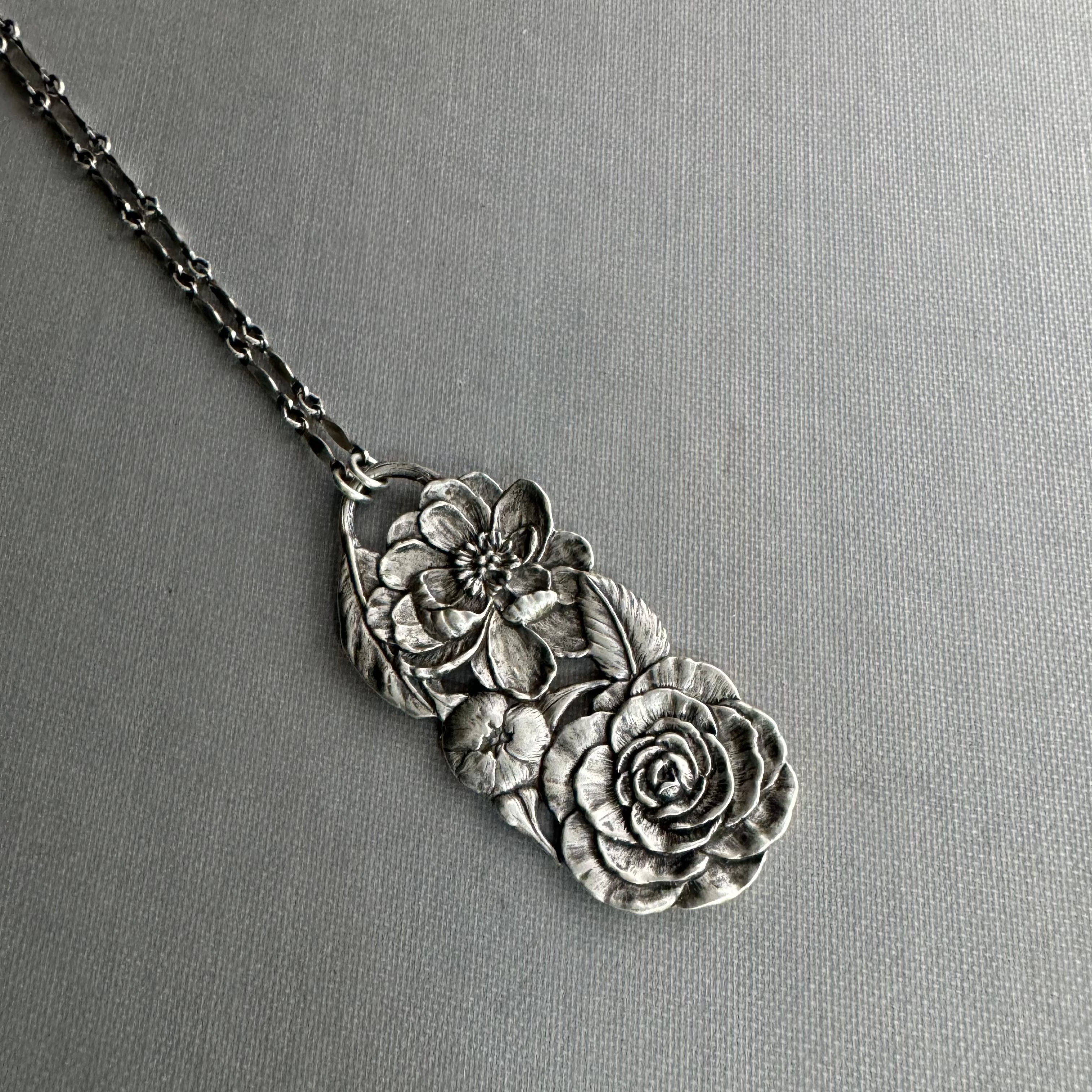 - Gold Pendant hangs on a darkened Sterling Silver Chain with 14k Gold accents