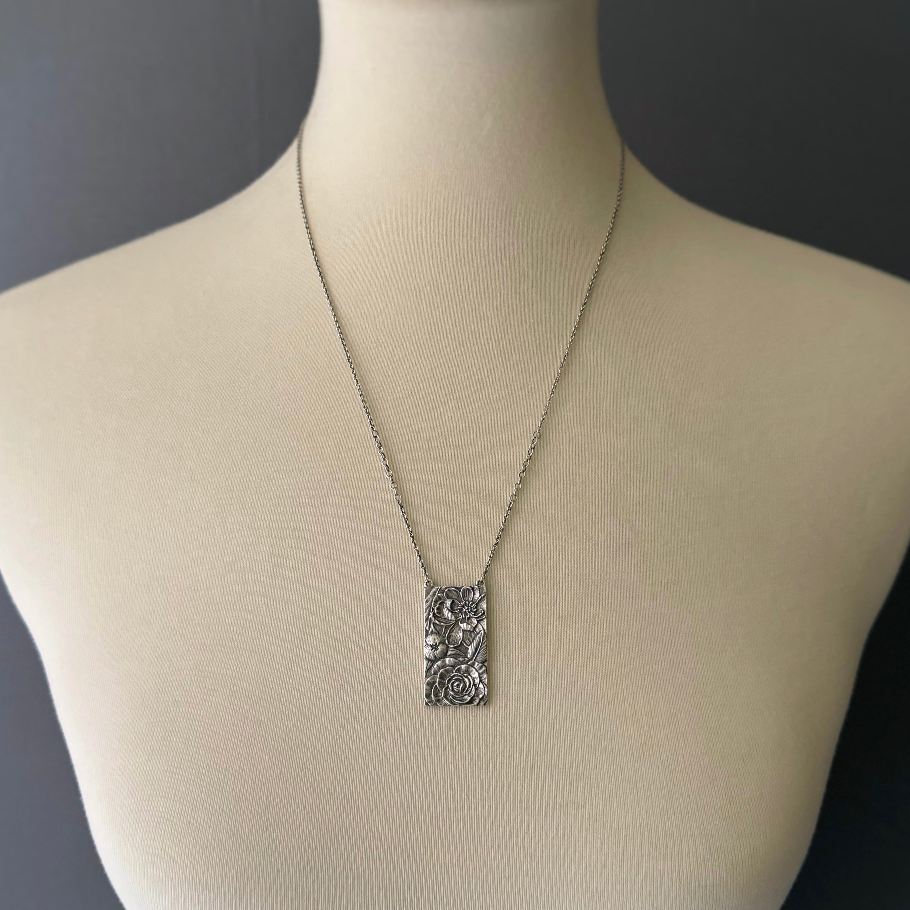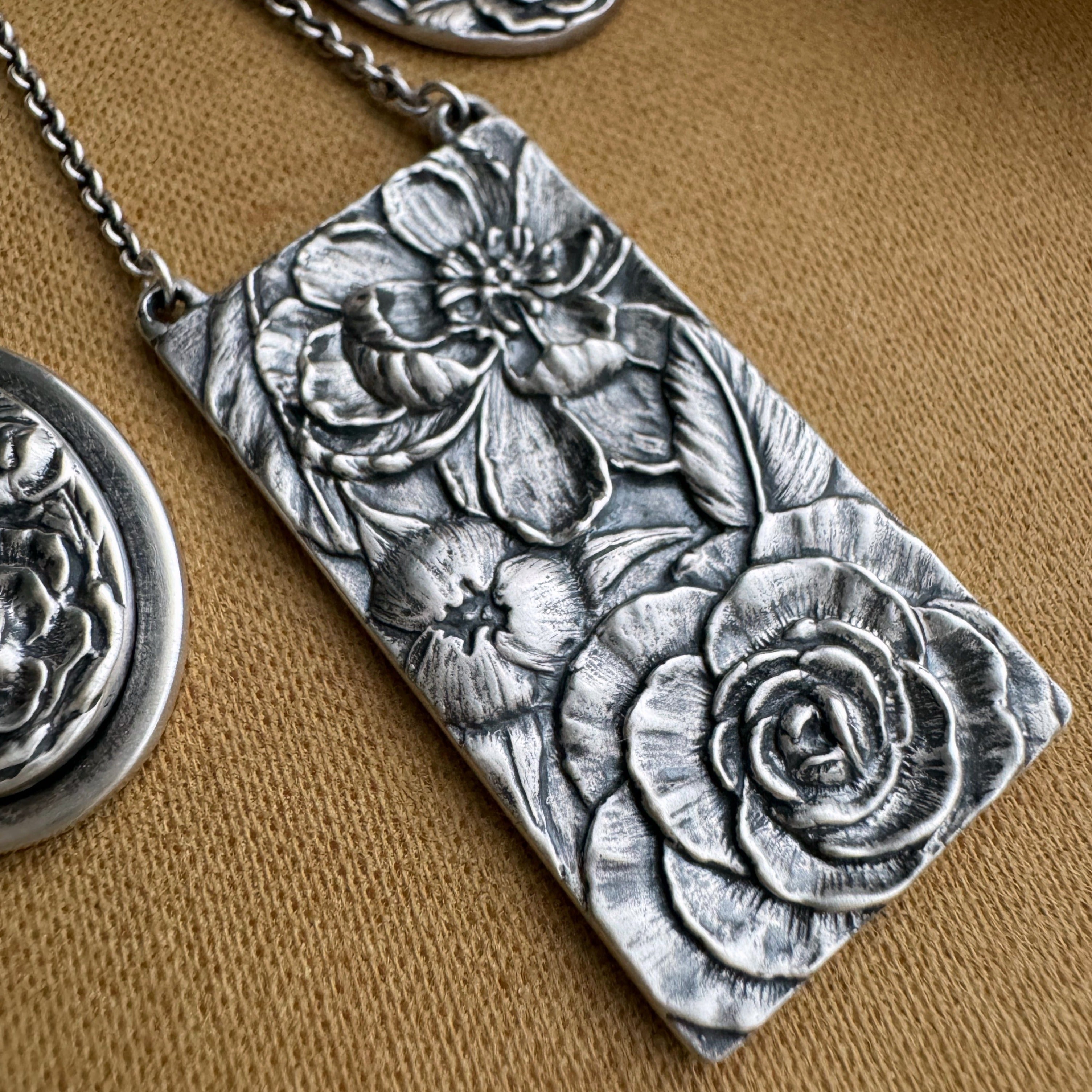 Rose and Peony Tablet Necklace | READY TO SHIP