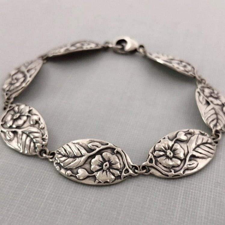A field of blooming flowers, vines, and tiny hearts. The flowering motif symbolizes growth, love, and open heartedness.