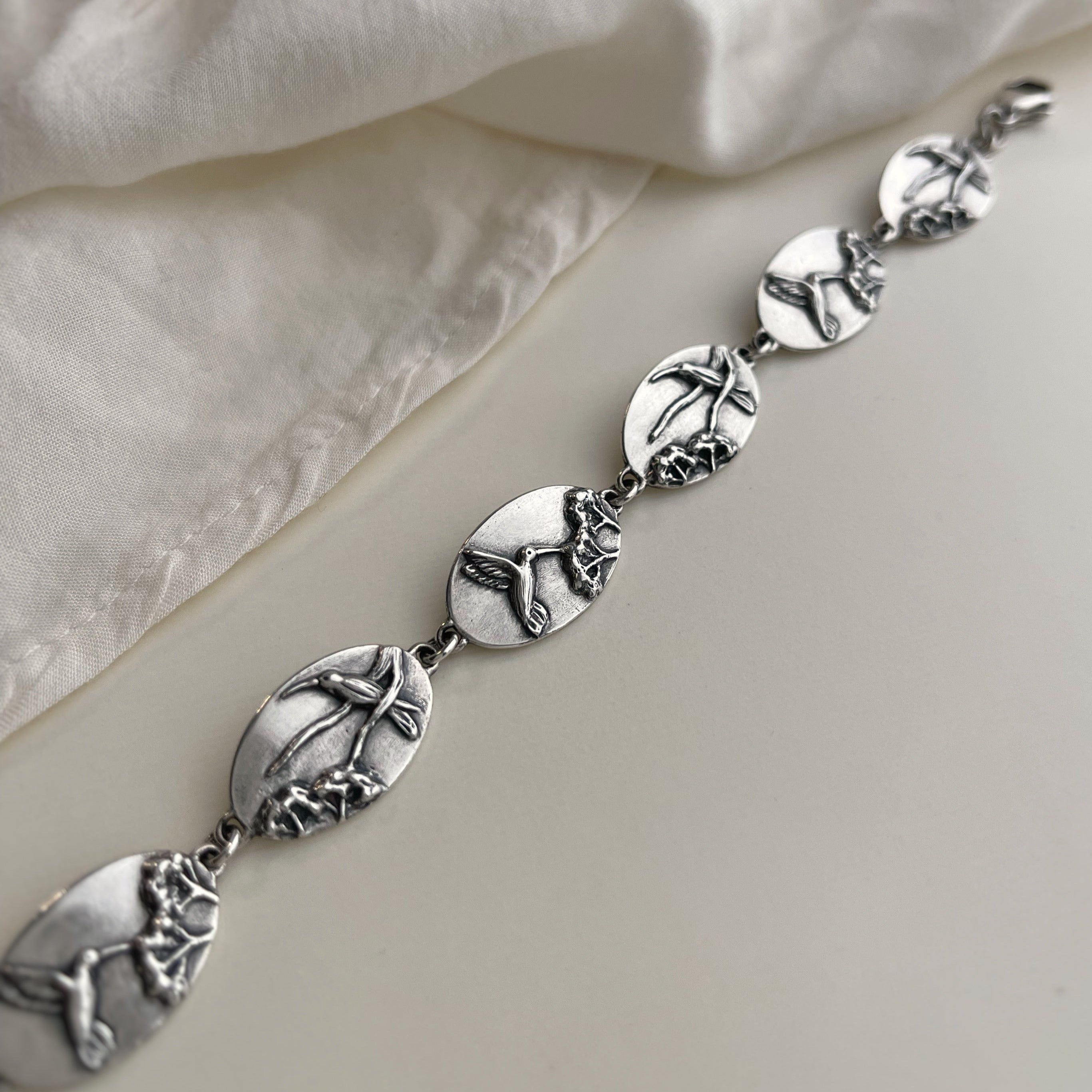 Hummingbird and Yarrow Link Bracelet